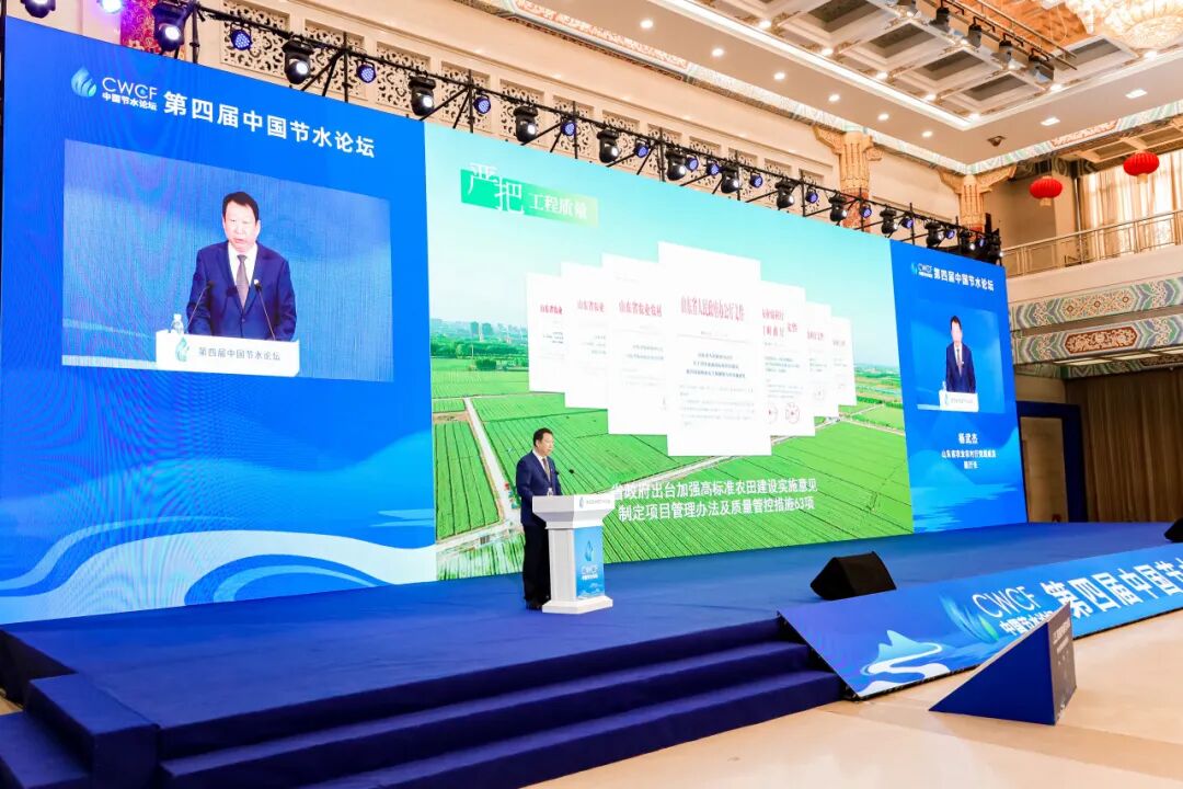 夏更生在致辞中表示,我国是农业大国,农业是用水大户,切实加强高标准农田建设,大力发展节水农业是保障粮食和重要农产品稳产保供、加快建设农业强国的必然要求。近年来,农业农村部认真落实习近平总书记重要指示批示精神和党中央决策部署,大力推进高标准农田建设,统筹发展高效节水灌溉,综合利用工程、技术、经济、管理等措施,因地制宜推广先进实用的农业节水技术,建立健全农业节水管理制度,取得了显著成效;山东是中华农耕文明的重要发祥地之一,在“三农”工作中地位重要、功能特殊,农业农村部将继续大力支持山东,建设更高水平的齐鲁粮仓,进一步夯实国家粮食安全根基。他指出,中国节水论坛是贯彻落实习近平总书记“节水优先、空间均衡、系统治理、两手发力”的新时期治水思路的重要行动和落实黄河流域生态保护和高质量发展战略的重要举措,也是推动“十四五”农业节水任务全面落实,展望“十五五”节水农业发展前景的重要活动,对于进一步促进我国水资源高效利用,推进农业绿色发展,加快构建节水型社会,推动乡村全面振兴具有重大而深远的意义。