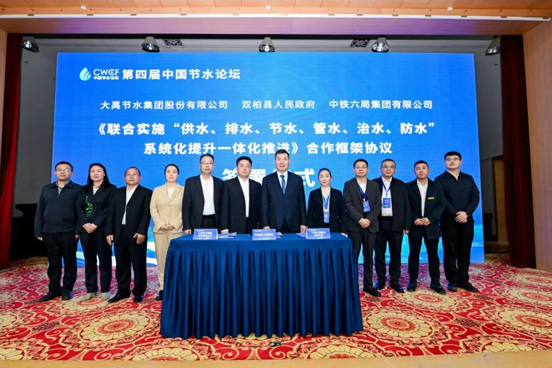 在本专题论坛上,大禹节水集团股份有限公司与安庆市人民政府签订《战略合作框架协议》,大禹节水集团股份有限公司与双柏县人民政府和中铁六局集团有限公司签订《联合实施“供水、排水、节水、管水、治水、防水”系统化提升一体化推进合作框架协议》。