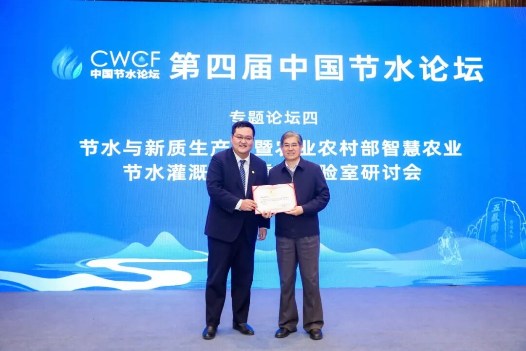 同时,在该专题论坛上,举行《农业农村部智慧农业节水灌溉重点实验室学术委员会》成立仪式,实验室主任、大禹节水集团董事长王浩宇致辞,并为实验室学术委员会主任康绍忠院士颁发聘书。康绍忠院士发表重要讲话。